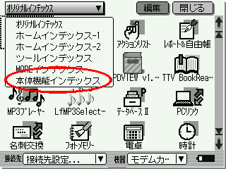 Zuerst einmal wechseln wir über unsere Hauptauswahl in das "Hontai kinou indekkusu"-Fenster, wo man schlichtweg alle Sharpprogramme findet (außer den MORE-Soft-Geschichten).